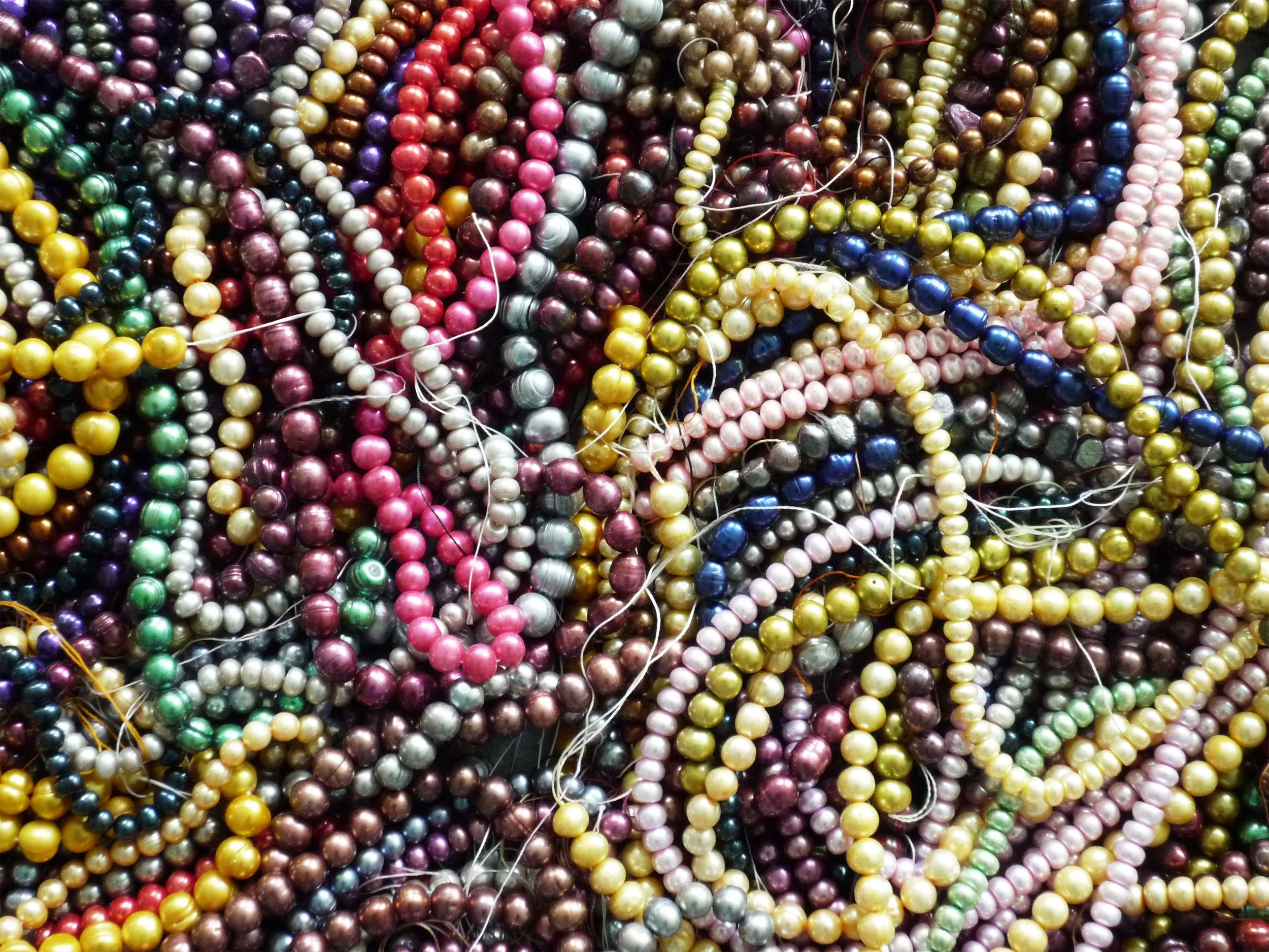 Eine klassische Perlenkette wird geknotet. Dadurch wird verhindert, dass alle Perlen von der Schnur purzeln, falls sie reisst. Es ist auch ein Schutz, damit die Perlen nicht aneinander reiben.